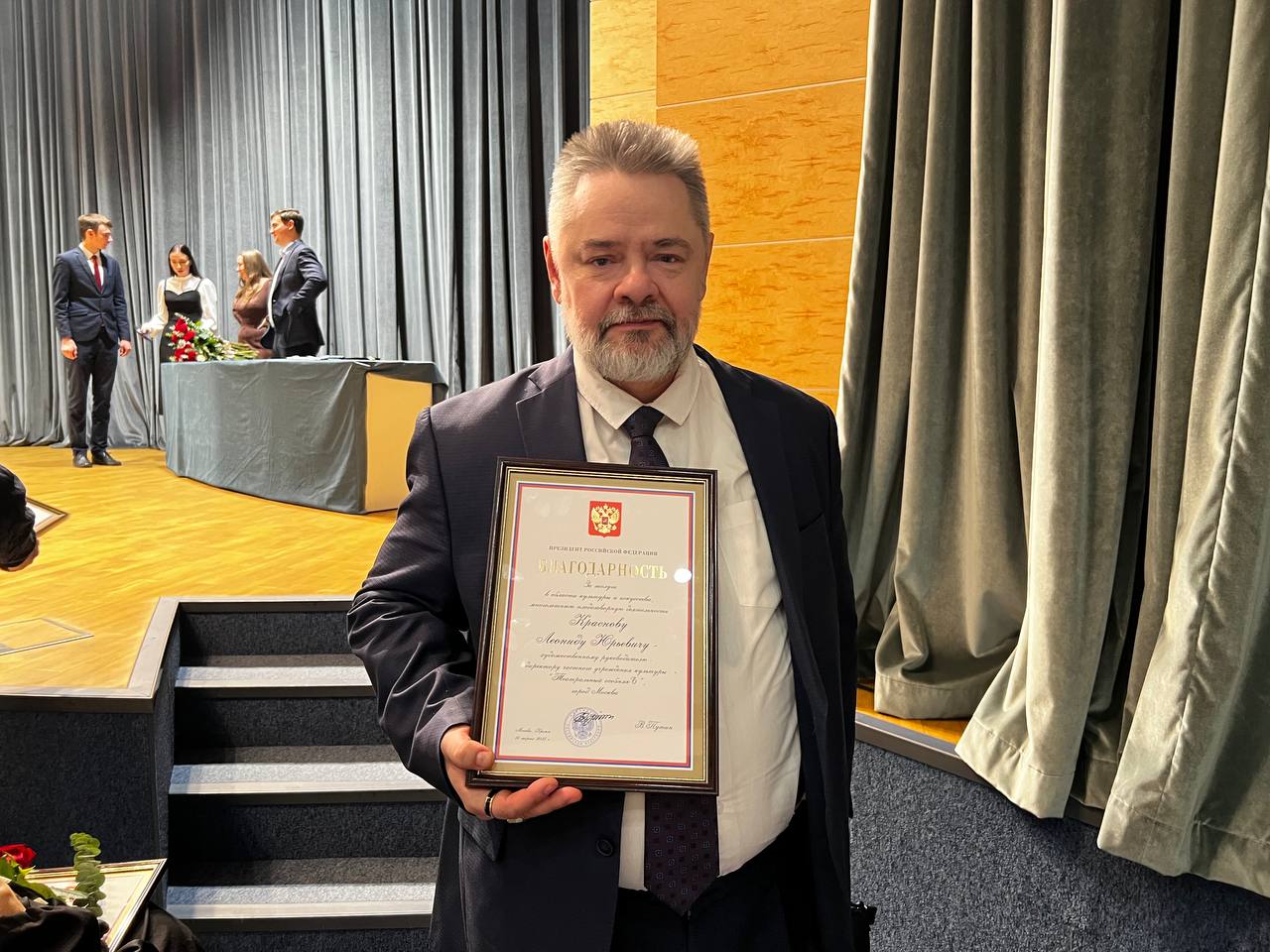 14 ноября в Министерстве культуры Российской Федерации нашему художественному руководителю, Леониду Юрьевичу Краснову, была вручена благодарность Президента Российской Федерации.