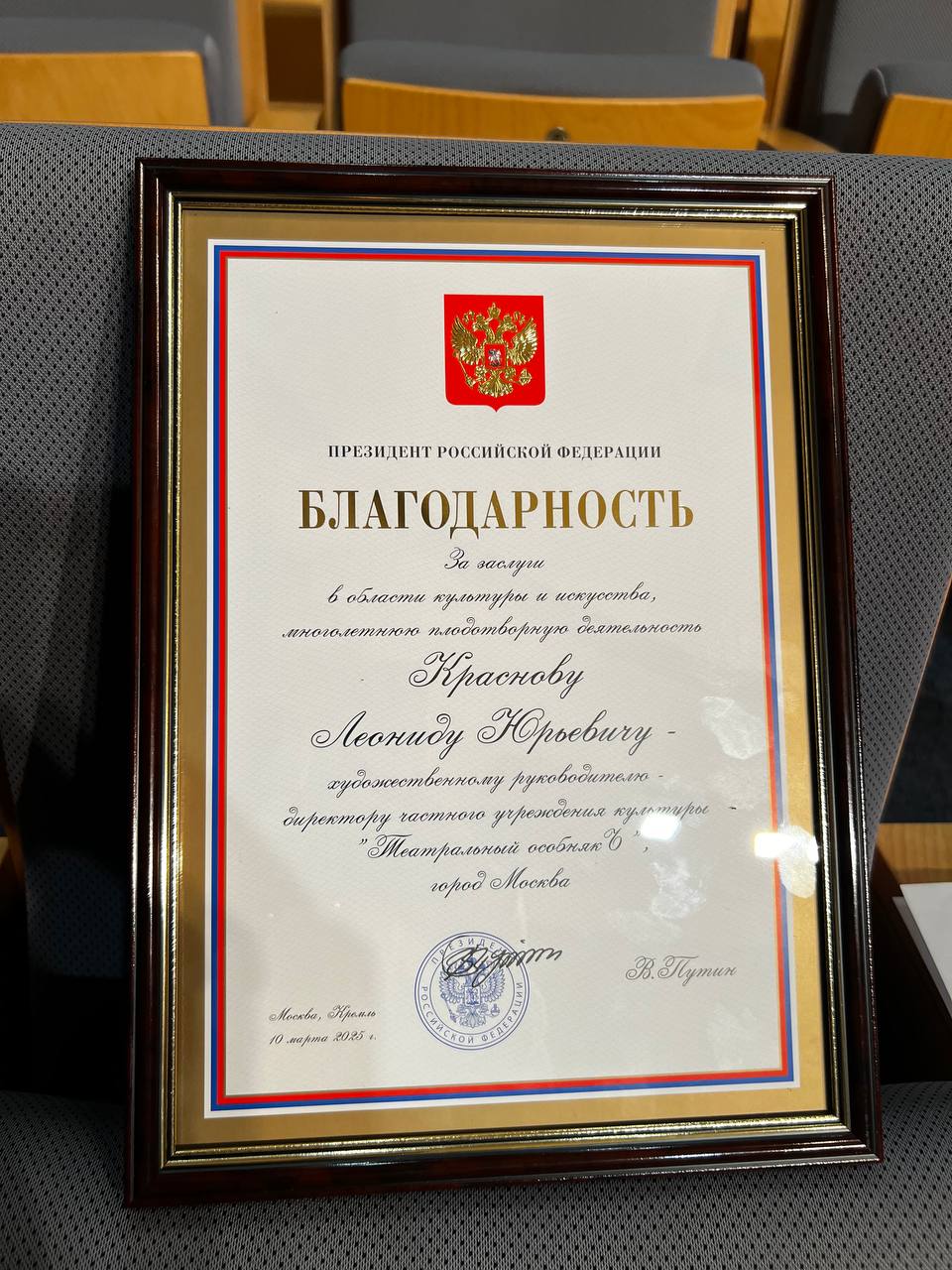 Леонид Юрьевич, мы гордимся Вами и от всего сердца поздравляем с этой заслуженной наградой! Ваш творческий путь — это пример служения искусству, на который мы все равняемся.