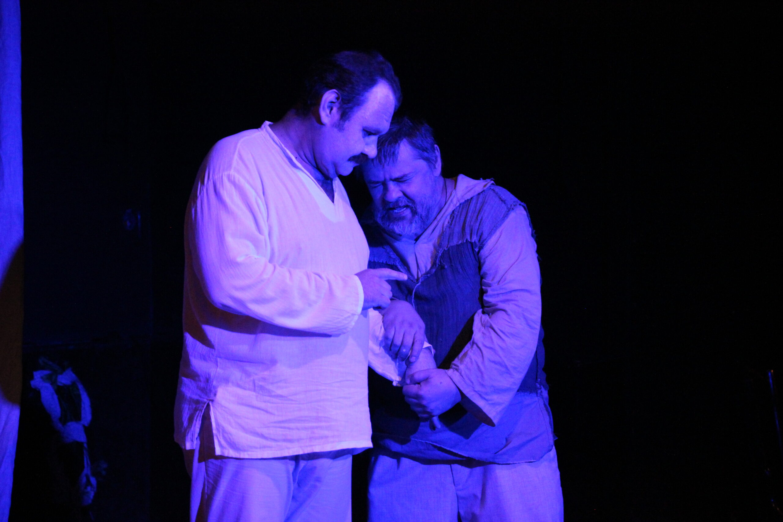 Ночь…Сцена провинциального театр. Артист — Василий Васильевич Светловидов, проснувшись во хмелю после своего бенефиса, оказался в темноте опустевшей сцены. Сцена — волшебное место — на ней оживают воспоминания давно минувших лет и мечты, не случившиеся в жизни. Его «лебединая песня» — размышление о самом себе. И в этом размышлении есть и покаяние за «зарытый талант» и осознание пройденности жизненного пути и многое другое! «Зарыл я талант, опошлил и изломал свой язык, потерял образ и подобие… Не чувствовал раньше, но сегодня… когда проснулся, поглядел назад, а за мною 68 лет. Только сейчас увидел старость! Спета песня! Спета песня!» Вроде бы все очень просто… Но театр таит в себе много загадок…